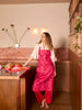 Bold cerise pink florals burst across linen, making this apron a vibrant choice for creative kitchens.