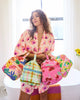 Our Wild Flowers In Bloom Quilted Cotton Toiletry Case is roomy, soft, and ready for all your travel treasures. With a zip closure to keep everything secure and a handy handle for easy toting, this softshell beauty is made for packing, squeezing, and stashing with ease. With plenty of space, it’s perfect for holiday hauls, weekend escapes, or simply keeping your bathroom bits in one happy home. The printed quilted cotton adds that cushy Kip&Co touch - practical, playful, and packed with colour. Featuring hand-drawn florals in bright pinks, daisy yellows and bold blues on a peachy sorbet base with matching peach zipper.
