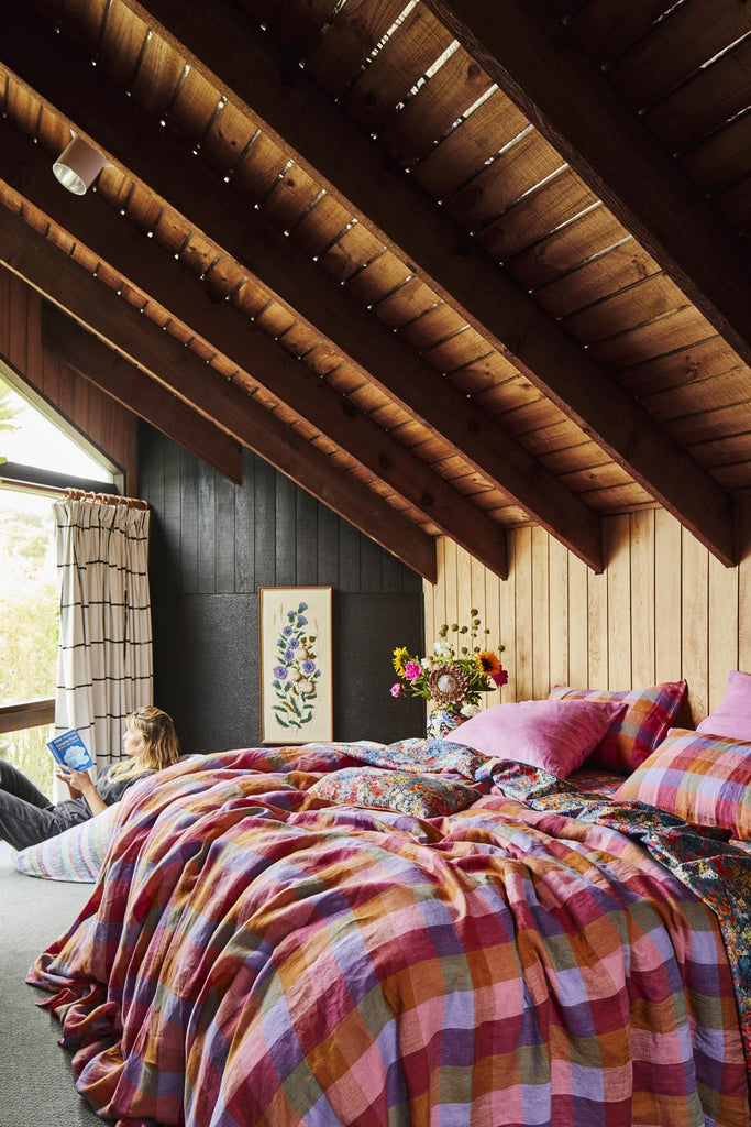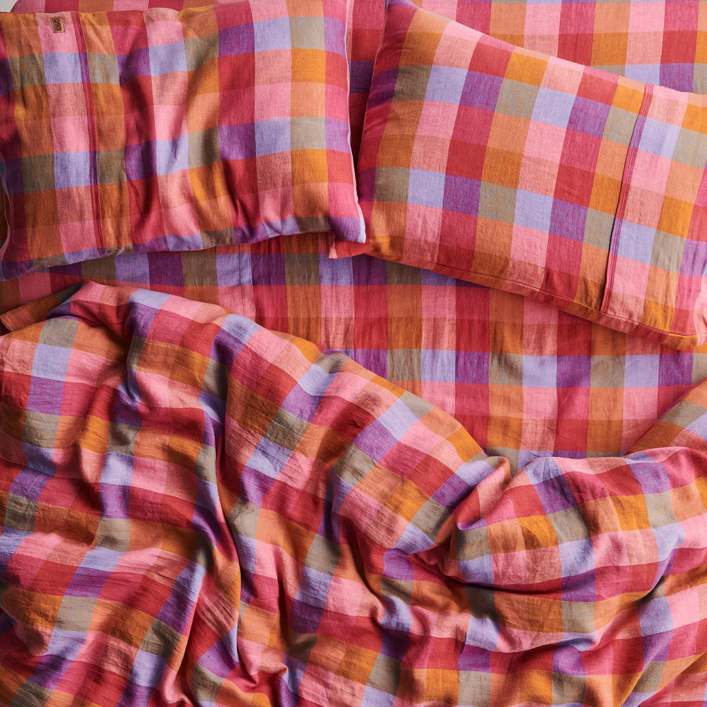 Elevate your bedroom style with our Tutti Frutti Linen Pillowcases in pink, purple, blue and orange check tartan. Pair with matching quilt cover or mix and match with others in our linen, velvet or organic cotton ranges. Style tip: Add some texture with the Desert Rose Velvet bedding.