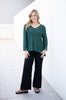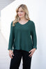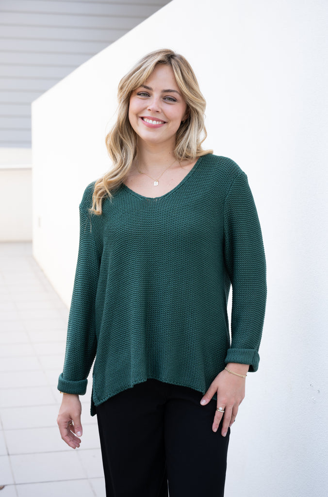 Cotton V Neck Roll Sleeve Jumper - Emerald