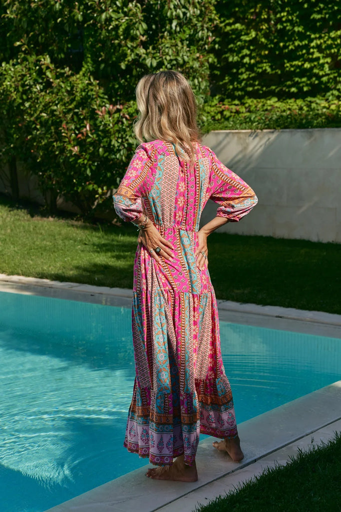 The stunning Jaase Cedella Maxi dress is a stunning dress & is featured in a three quarter sleeved silhouette with a triple pleating detail. A lovely drawstring waist and a femme touch with lace trim across shoulder, if you love a Tessa you will love this beauty.